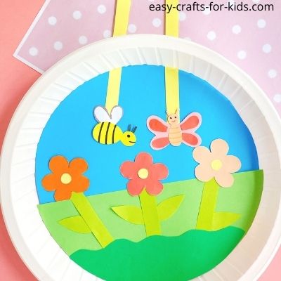 Paper Plate Gardening Craft with Moving Bee and Butterfly