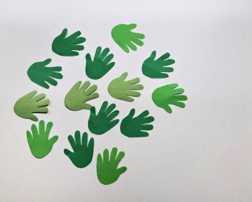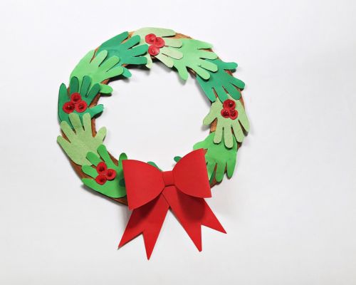 Select different shades of green colored craft papers to prepare the handprints. You can simply trace your own hands for this craft. Trace and cut out as many handprints as you need to make the wreath.